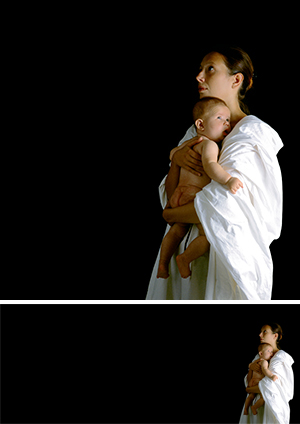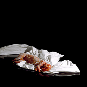 E’ un corpo di fotografie dalle grandi dimensioni, accomunate dall’uso di sfondi nerissimi, piatti, che creano una profondità senza limiti di spazio, dai quali emergono le immagini. L’annullamento del contesto nasce dell’esigenza di azzerare qualsiasi riferimento architettonico o strutturale, per accentrare l’attenzione sui soggetti. In questo modo si viene a creare del pathos dilatato che riconduce al mistero. Tutto è stato rigorosamente fotografato in studio, costruendo un set essenziale.