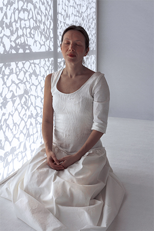 White predominates, making the story ethereal and seeped in spirituality. The plot is lost in an announced absence whose drama is subtended, and a powerful symbolic value is affirmed. In some cases the human figure is the main subject and even if the images appear to have sprung from a frozen theatricality, they are actually minimal acts in suspended postures, in which the action can be rediscovered. In other cases, the place of abandonment is represented, but it is an abandonment that has taken place recently, the photo taken perhaps a moment after the event occurred, as if the energy of those had brought it about were still there, present, tangible. S.R.