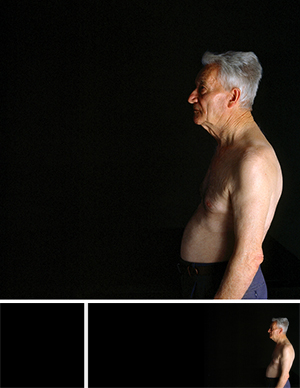 E’ un corpo di fotografie dalle grandi dimensioni, accomunate dall’uso di sfondi nerissimi, piatti, che creano una profondità senza limiti di spazio, dai quali emergono le immagini. L’annullamento del contesto nasce dell’esigenza di azzerare qualsiasi riferimento architettonico o strutturale, per accentrare l’attenzione sui soggetti. In questo modo si viene a creare del pathos dilatato che riconduce al mistero. Tutto è stato rigorosamente fotografato in studio, costruendo un set essenziale.
